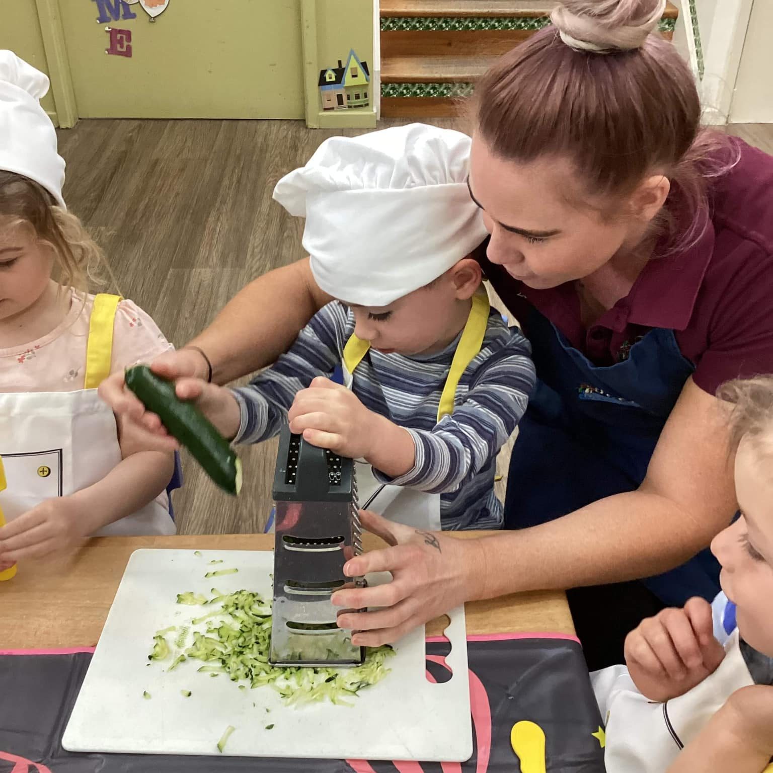 Our Mini Master Chef program is conducted with our talented centre cooks and educators where the children are involved in a hands-on cooking class. The aim of these lessons is to encourage the children to play an active role in their health and well-being, to make healthy choices and to become familiar with basic cooking skills. The children will actively engage in all aspects of cooking with the assistance and guidance of an experienced cook. Each week our Mini Master Chefs will create healthy and delicious meals which the children can enjoy for their meal times.