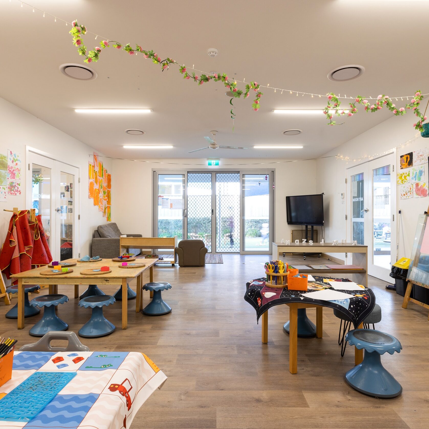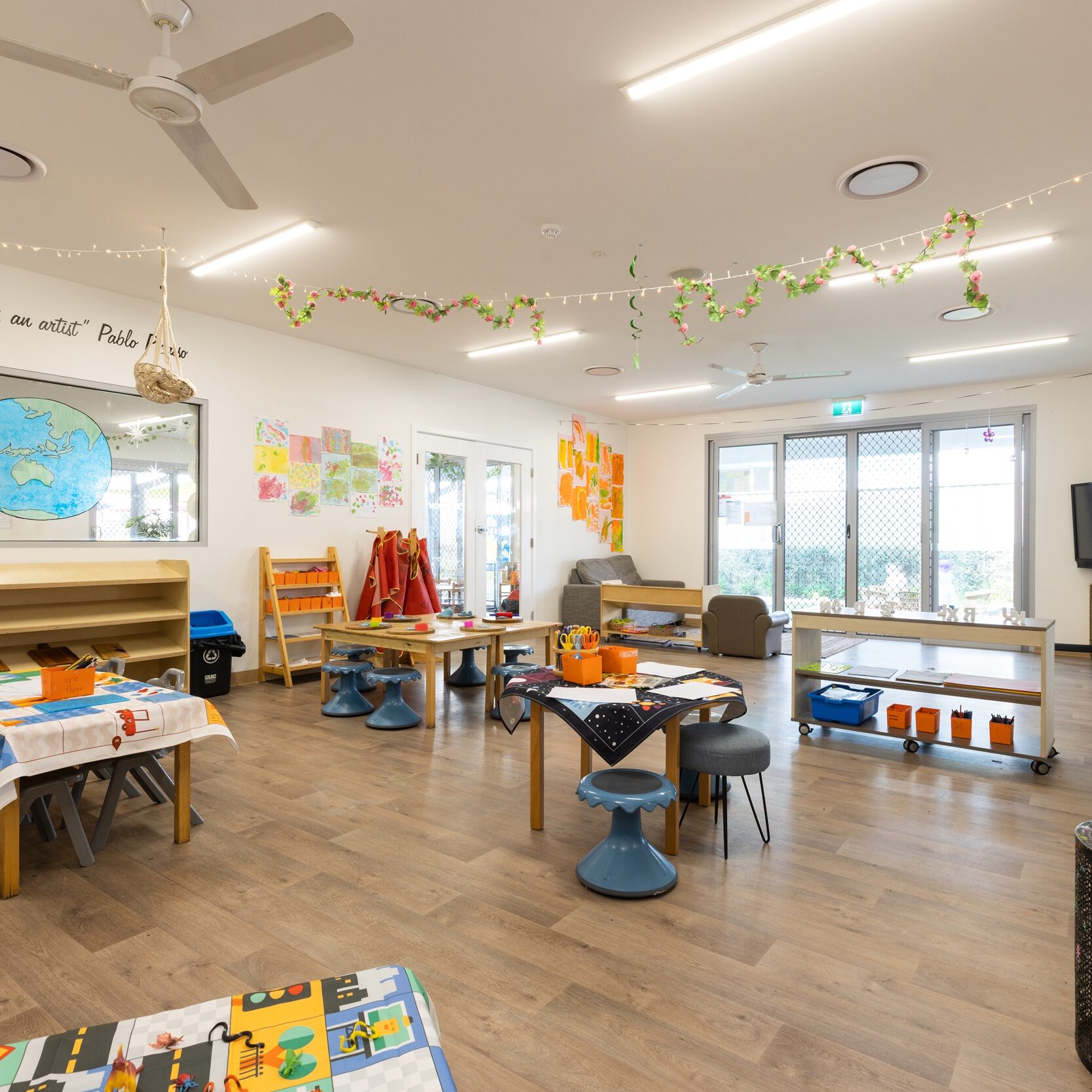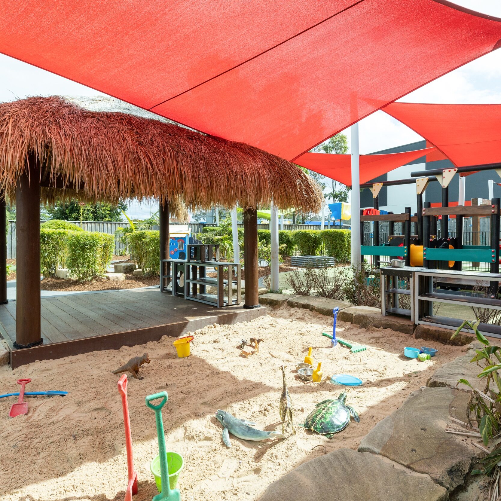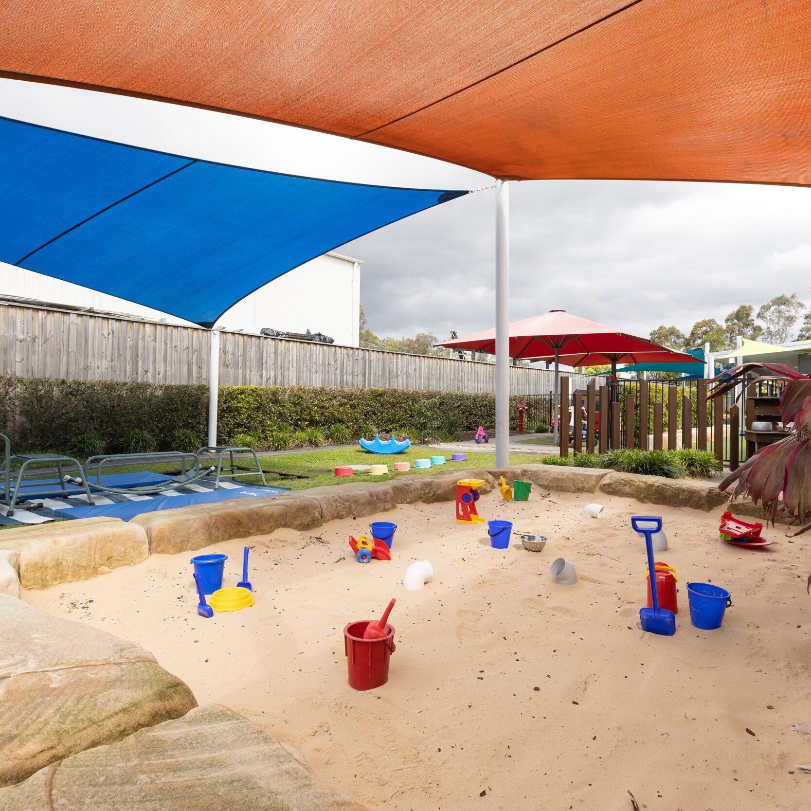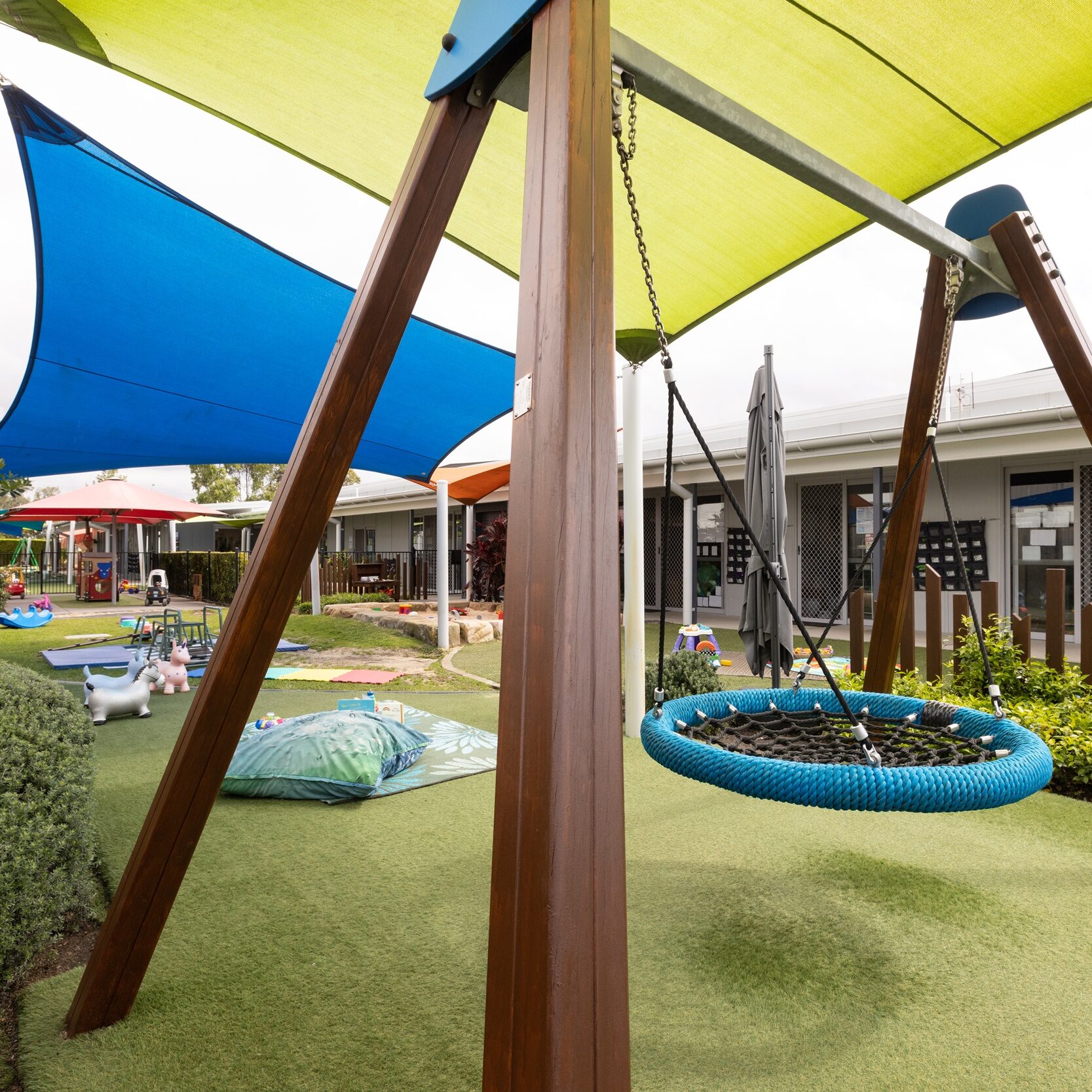 We have a dedicated 0-2 years nursery space catering for 24 children per day. The children have access to two beautiful rooms and their own playground with an array of play spaces including sandstone sandpit, nest swing, bike track and large grass area. Our 2-3 years children also have two rooms with 15 children in each of these spaces. They share the outdoor area with our preschool children. The preschool rooms cater for a total of 60 children and have three large indoor rooms to engage in, including a purpose-built art room. The outdoor area for our 2-6 years children includes a large sandstone sandpit, swings, bike track, climbing forte, obstacle course and large open grass area.